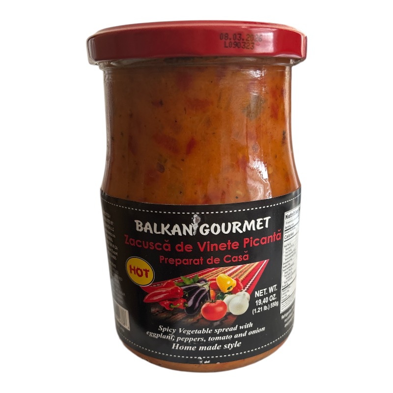 Experience the bold flavors of the Balkans with Balkan Gourmet Spicy Vegetable Spread – Homemade Style 19.4 oz(550g) Made from a mix of roasted and fresh vegetables – eggplant, peppers, tomato and onion with carefully selected spices, this spread delivers a rich, slightly smoky, and spicy taste reminiscent of traditional Balkan cuisine.
