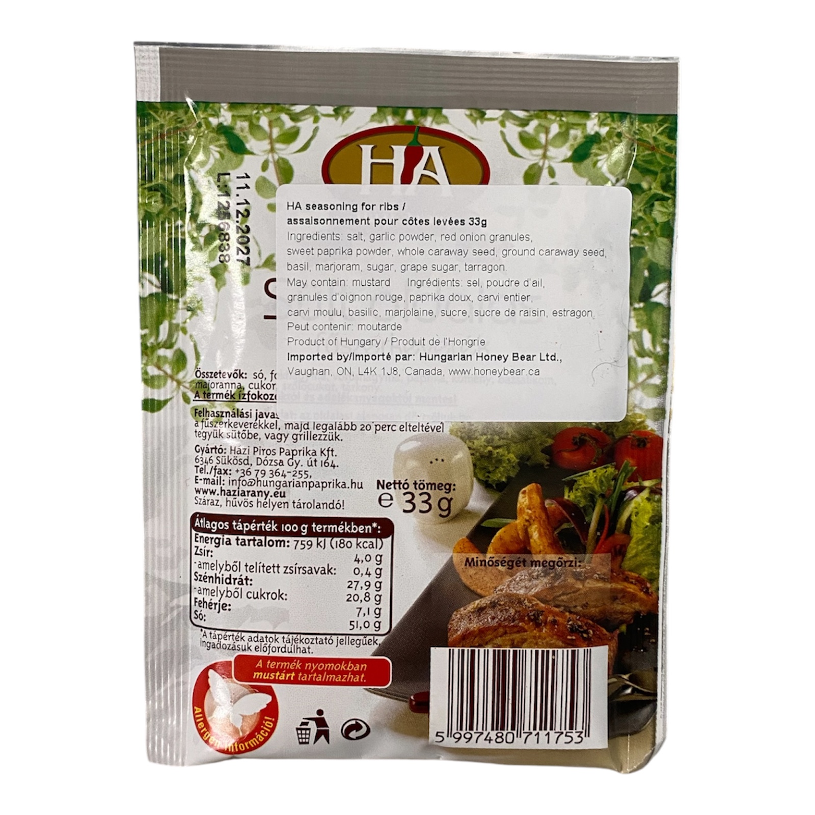 HA Seasoning for Ribs, Sült Oldalas Fűszerkeverék is an authentic Hungarian spice blend crafted specifically for seasoning ribs to perfection. This 33g blend combines traditional Hungarian herbs and spices to deliver a rich, smoky, and deeply aromatic flavour profile that transforms pork ribs into a tender, mouth-watering feast. Ideal for oven-roasted, grilled, or barbecued ribs, this convenient seasoning mix brings the warmth of homestyle Hungarian cooking to your kitchen. Simply rub generously onto ribs before cooking and let the spices do the rest. A must-have pantry staple for lovers of Central European cuisine and bold, hearty flavours.