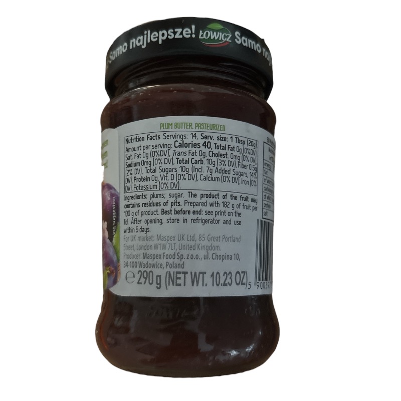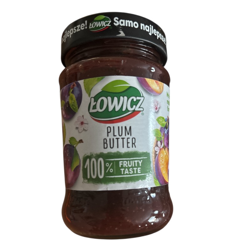 Łowicz Plum Butter (Powidła Śliwkowe) is a classic Polish spread made from carefully selected plums, slowly cooked to achieve a thick, rich texture and deep fruit flavor. Prepared according to traditional recipes, this plum butter contains no artificial colors or preservatives and delivers a naturally sweet, slightly tangy taste.