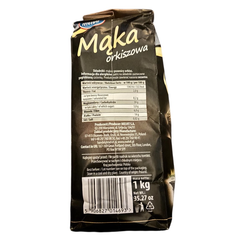 Bake naturally with Melvit Spelt Flour (Mąka Orkiszowa) – 1kg, a premium flour made from carefully selected spelt grain. Spelt is known for its rich, slightly nutty flavor and is often chosen as a healthier alternative to traditional wheat flour.