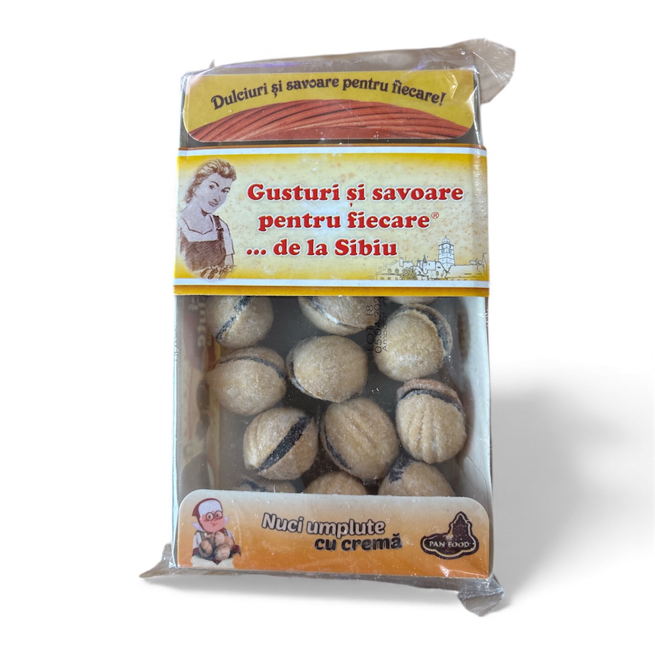 Walnut Cookies Stuffed with Cocoa Cream (Nuci, Oreshki) Pan Food bring the beloved classic European “walnut-shaped cookies” to your home. Each delicate, buttery shell is baked to a light crunch and generously filled with velvety cocoa cream for the perfect balance of sweetness and texture. These traditional cookies are often enjoyed at celebrations and family gatherings, offering a taste of old-fashioned homemade dessert in a ready-to-enjoy package. Perfect with tea, coffee, or as a festive gift.